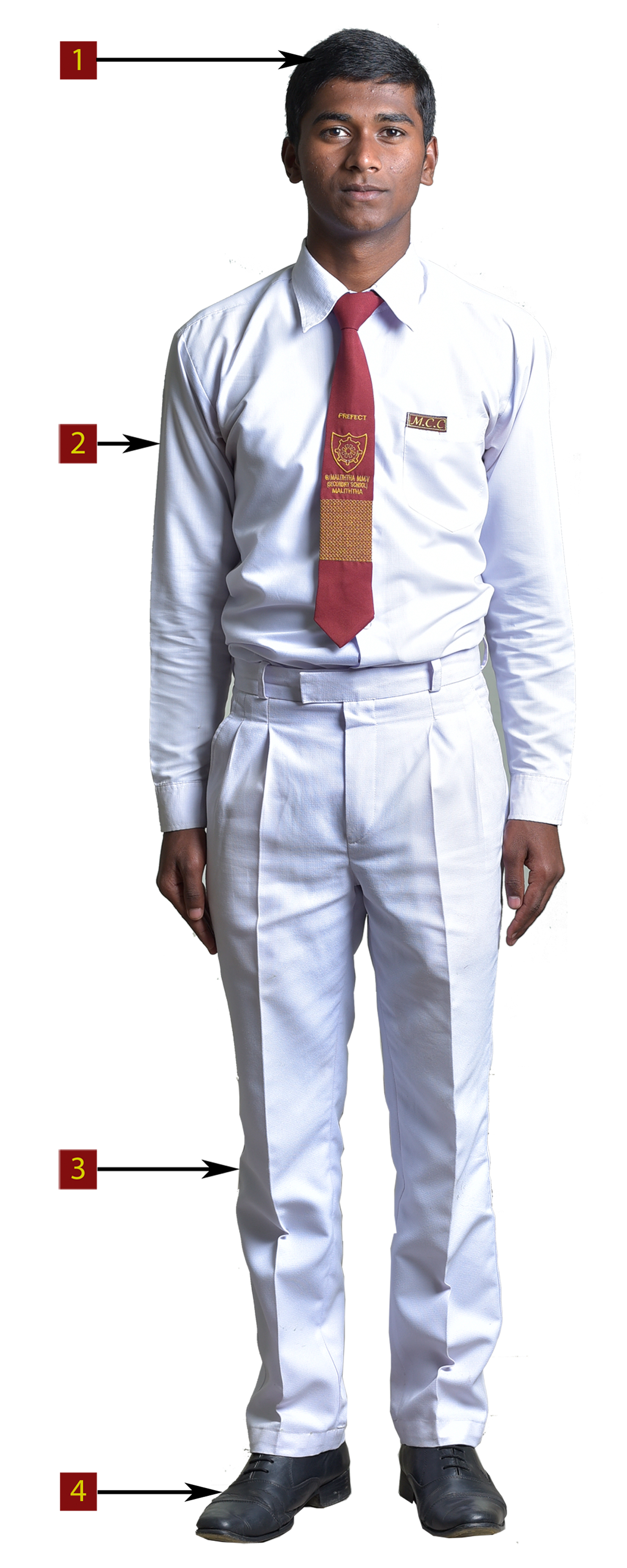- ලේස් දමා ගැට ගැසිය හැකි කළු පාවහන් පමණක් පිරිමි දරුවන් පැලඳිය යුතුය.