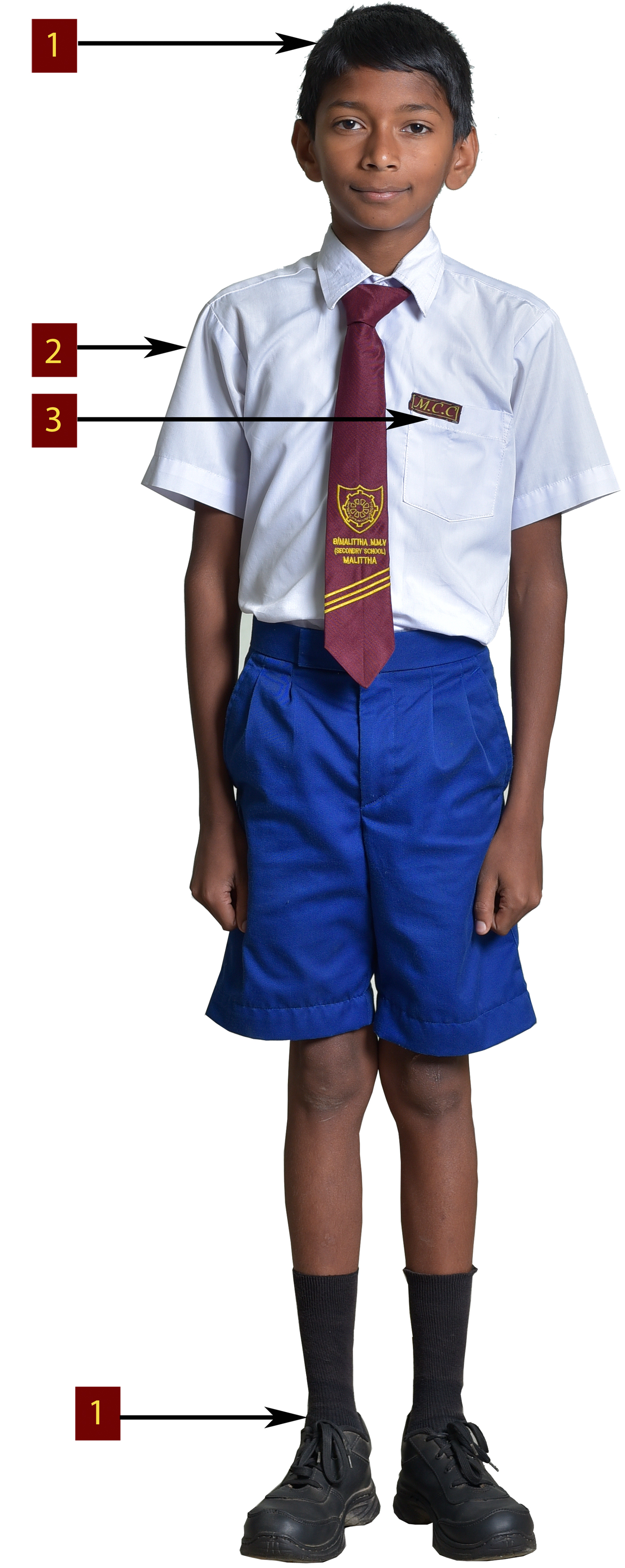- කමිස සාක්කුවේ දකුණු කෙළවර උඩ විද්යාලයීය නිල ලාංඡනය ස්ථිර ලෙස මසා තිබිය යුතුය.කටු ගැසීම හෝ අලවා තැබීම නොතළ යුතුය.